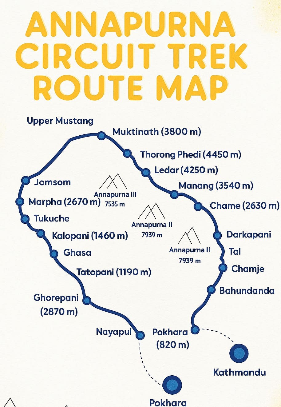 Pokhara is one of the most popular starting points for the majority of trekkers. From Pokhara, you can travel by a local bus or hire a jeep to Besisahar, which is approximately 115 km from Pokhara. It takes around 3–4 hours to travel along the beautiful Marsyangdi River valley.